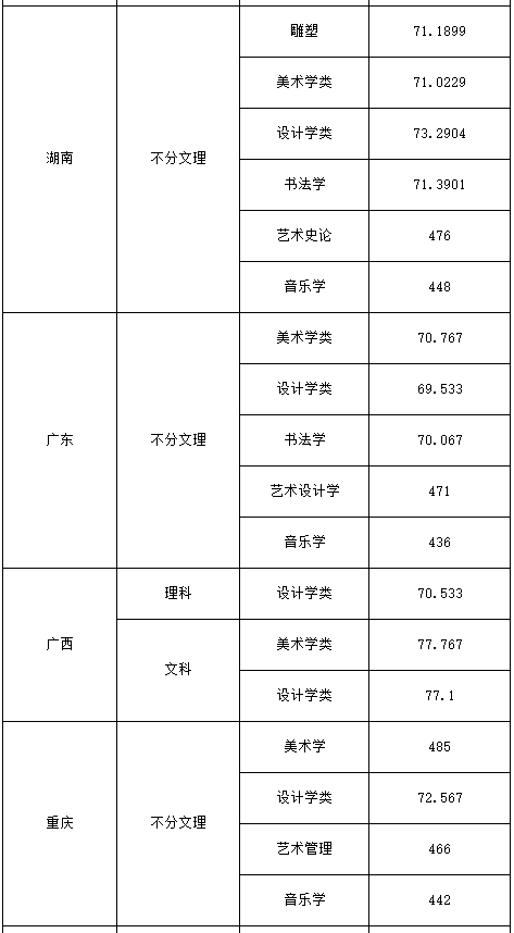 ②按湖南省教育考试院要求,美术学类、设计学类、雕塑、书法学专业的综合分计算方法为:综合分=文化总分×0.0667+省统考总分×0.1667。