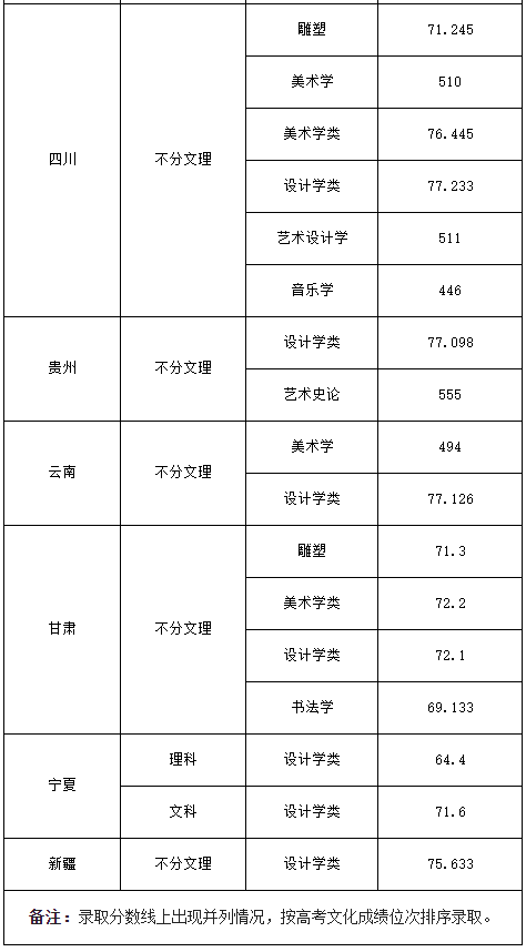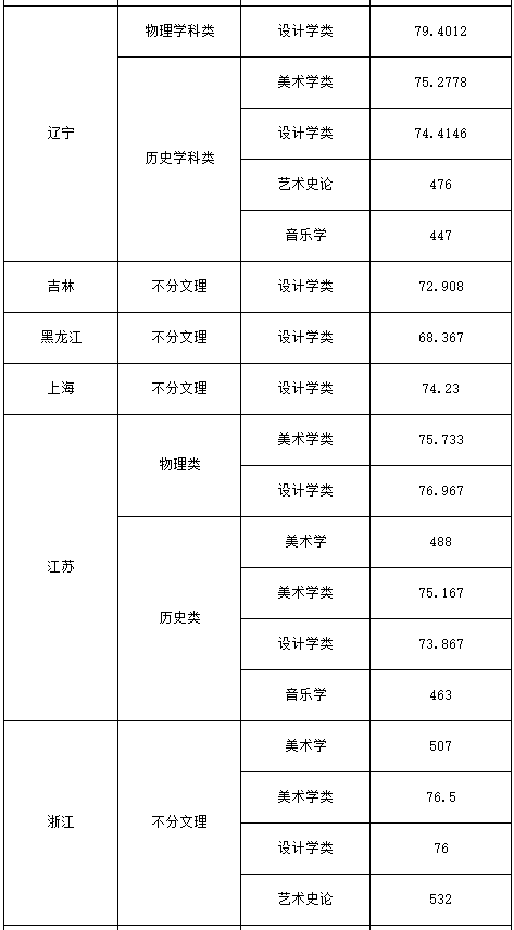 西安美术学院2023年本科艺术类提前批次(省外)录取分数线公告