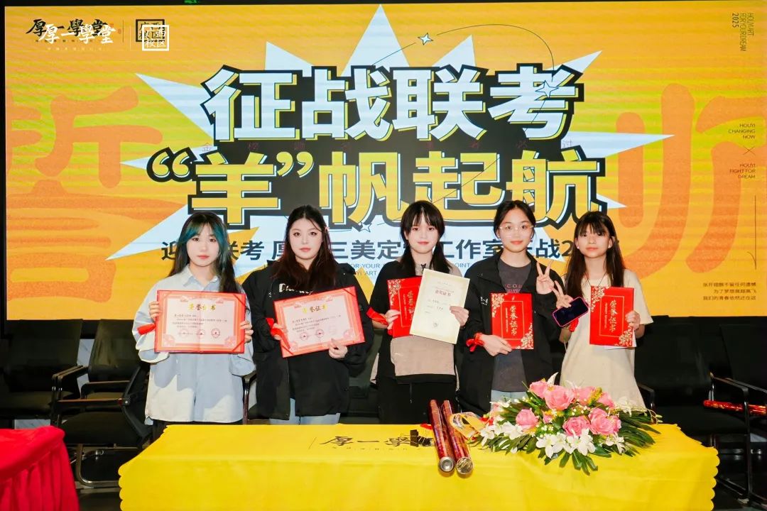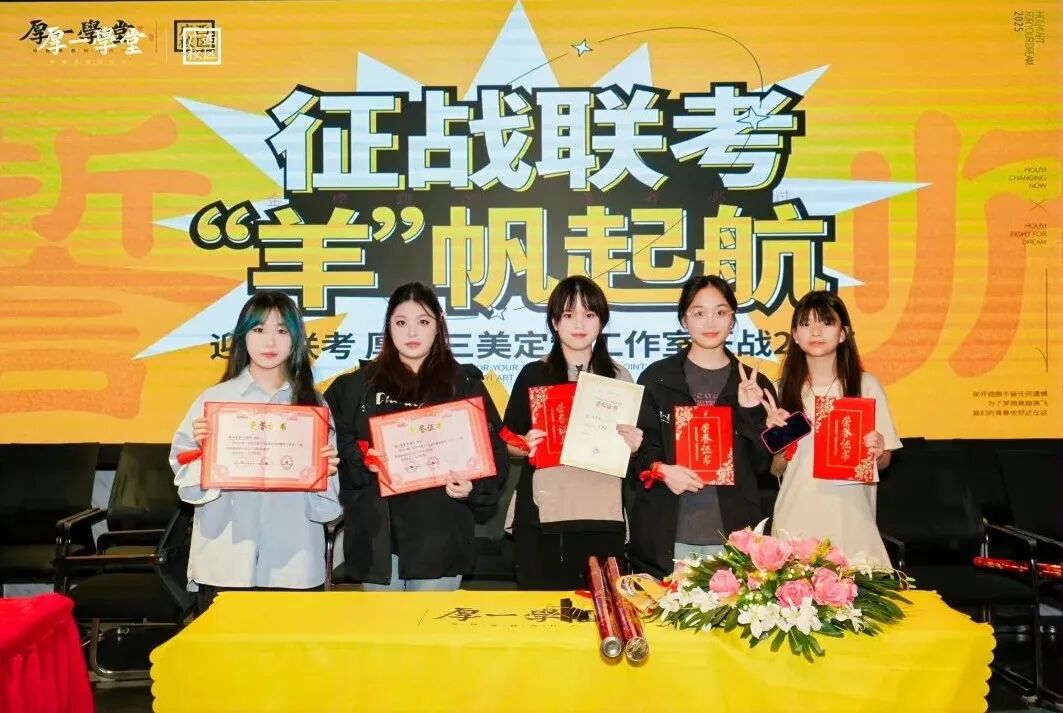 在宣誓的前夕,一张张印着金榜题名的许愿牌在学生们手中辗转,大家都围成一团叽叽喳喳的商量,想写些有趣的话儿上去