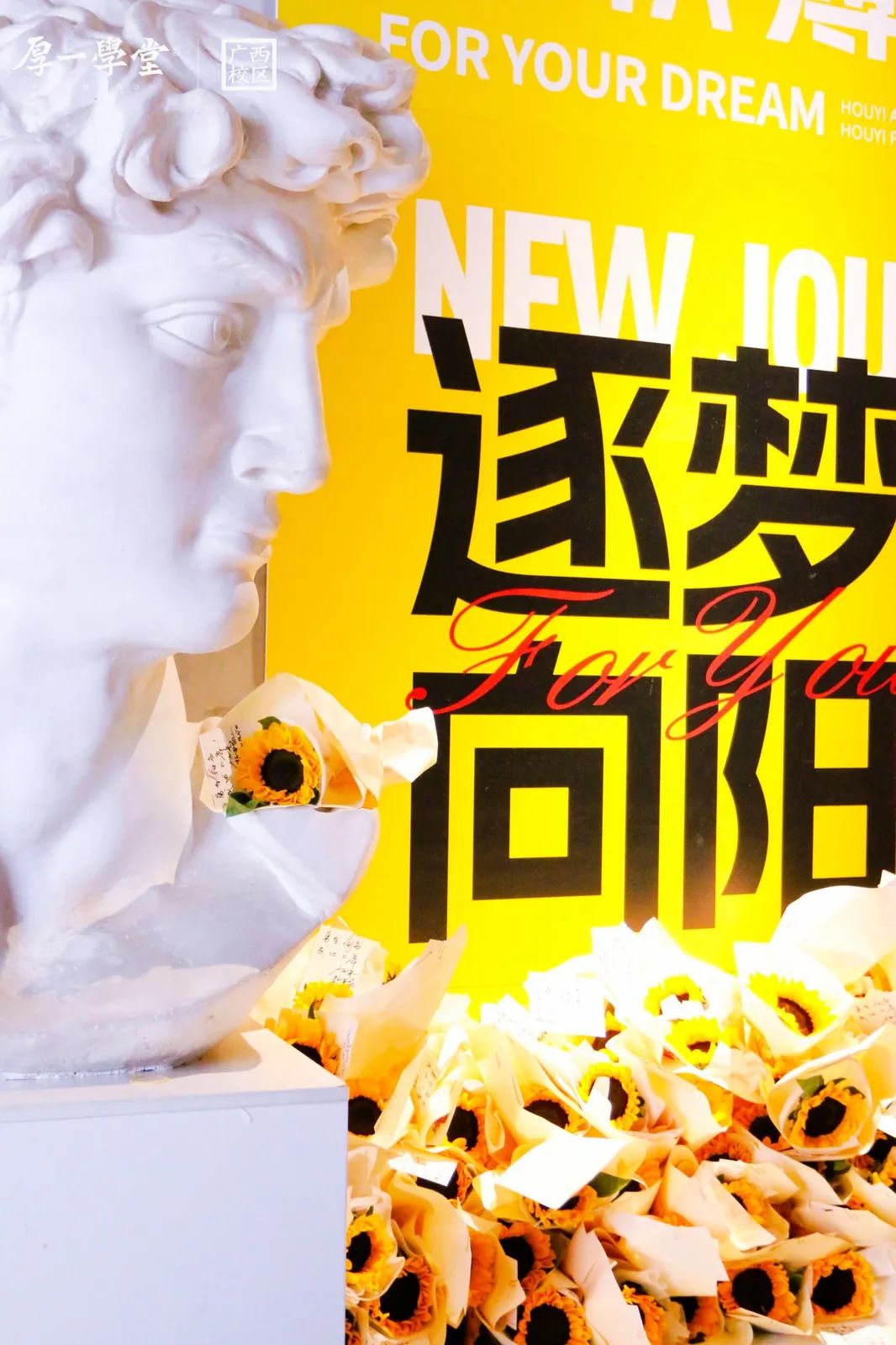 每一位学子都将收到为他们准备的向日葵花束与校长寄语贺卡,祝愿他们一举夺“葵”,考试顺利。