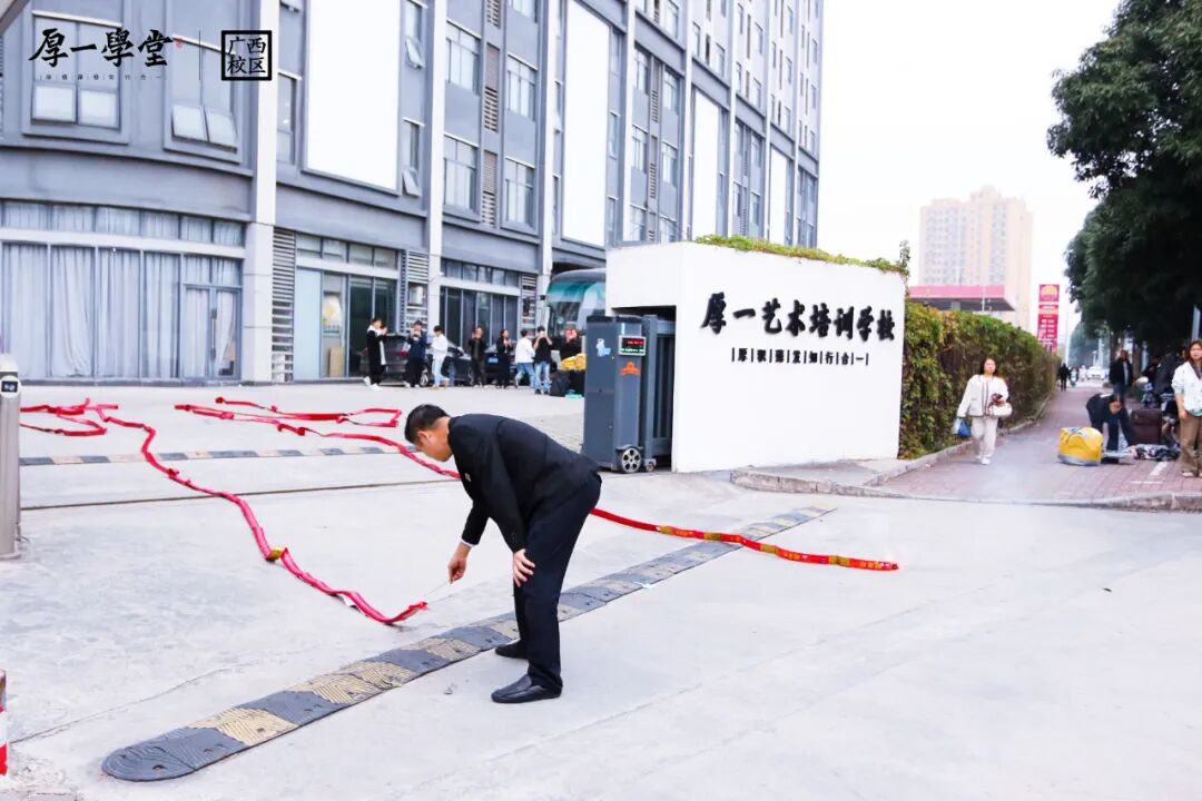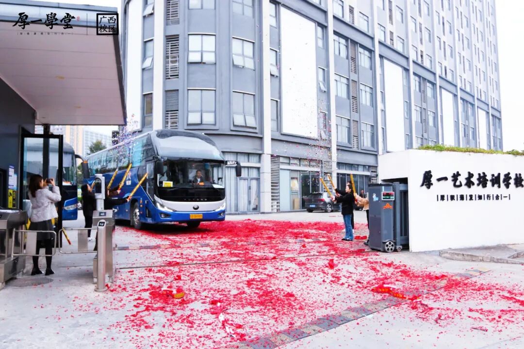 广西厚一学堂的送考仪式,总是充满温度的仪式感。当晨光微露,一串清脆的鞭炮声划破宁静——那是出征的号角,是为梦想壮行的鼓点。缤纷的礼花在空中绽放,如同学们笔下绚烂的色彩,也如他们即将展开的锦绣前程。